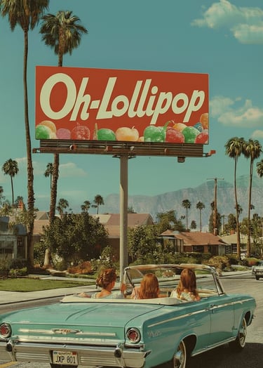 "Oh Lollipop" reimagines the Chupa Chups brand through a 1960s pop art lens. Bold color, playful nostalgia, and retro styling came together in a series that feels both timeless and pop-culturally sharp.